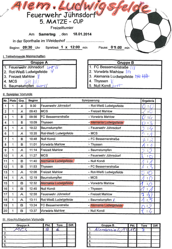- um 17:20 Uhr war das Turnier offiziell beendet